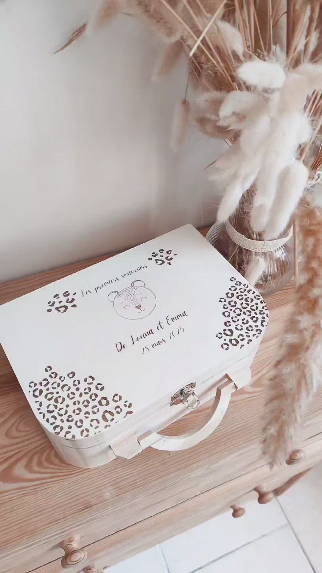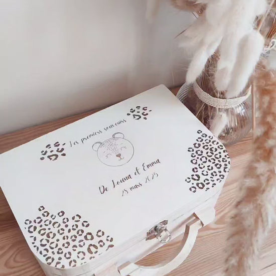 Parce que chaque souvenir compte… Voici notre valise à souvenirs pour bébé personnalisée, un écrin tendre pour garder précieusement tous les petits trésors de ses premiers instants. ✨
