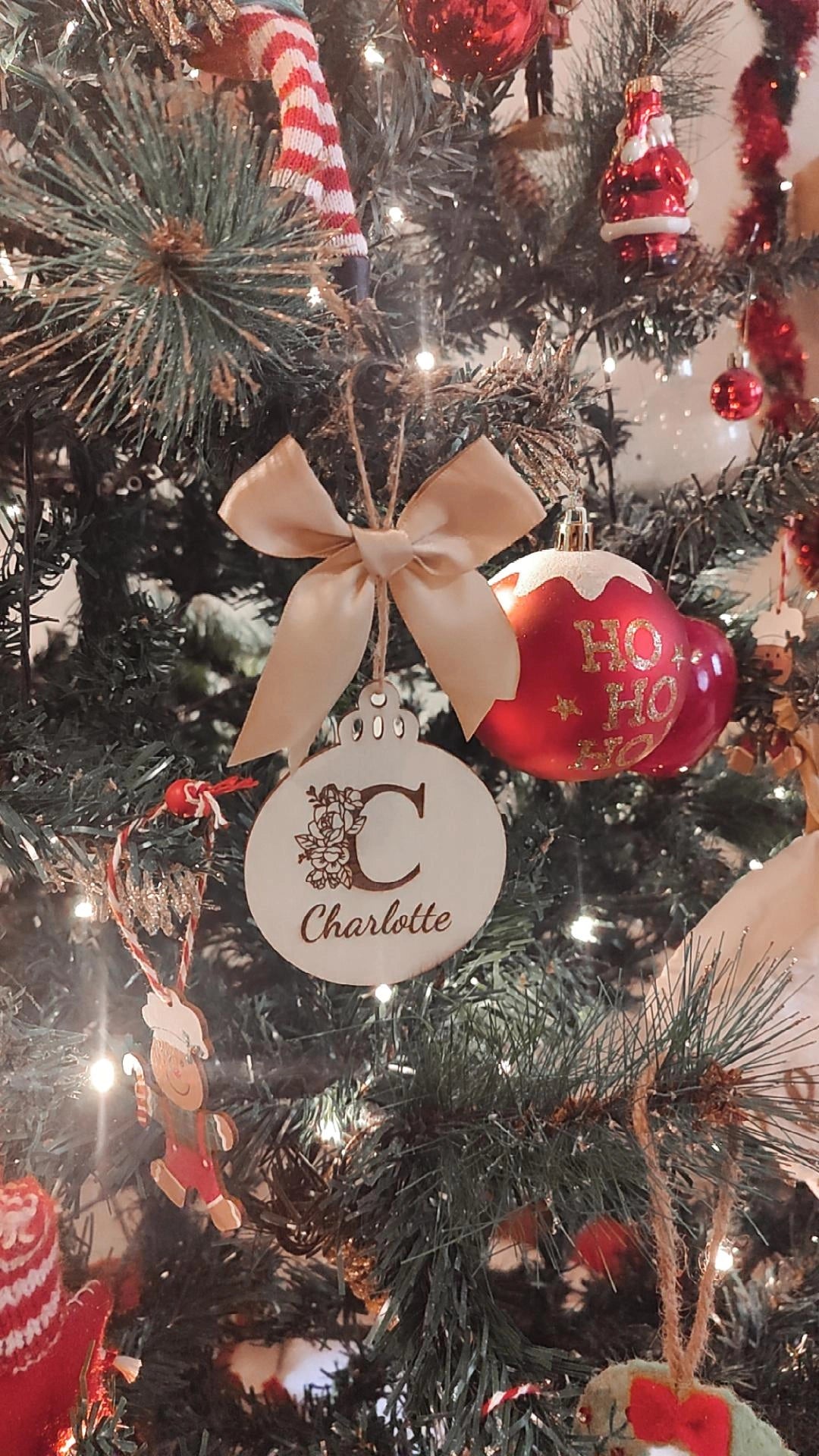 Découvrez nos boules en bois personnalisées : initiale, prénom et délicats motifs fleuris gravés avec soin.