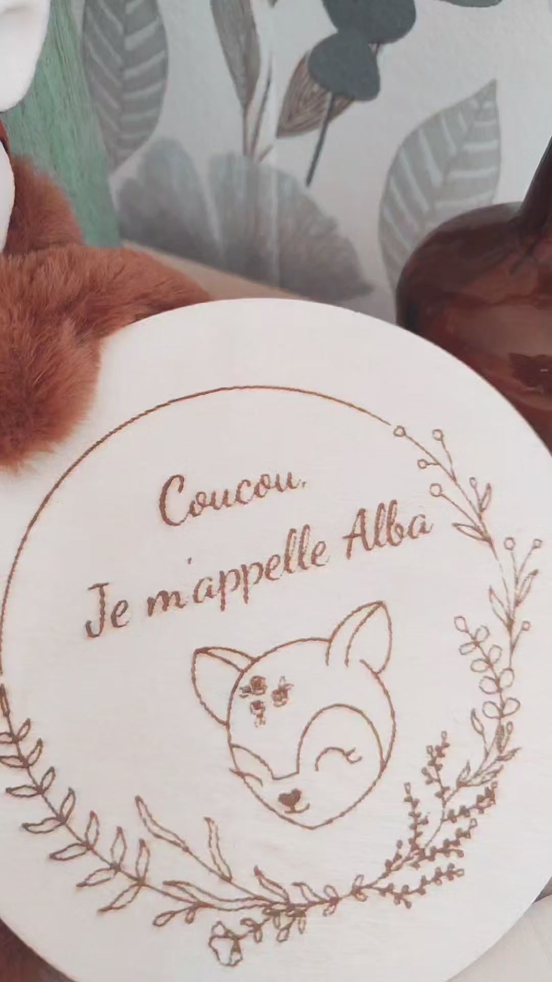 Apportez une note douce et symbolique à l'annonce du prénom de bébé avec ce cercle en bois gravé, personnalisé avec amour.