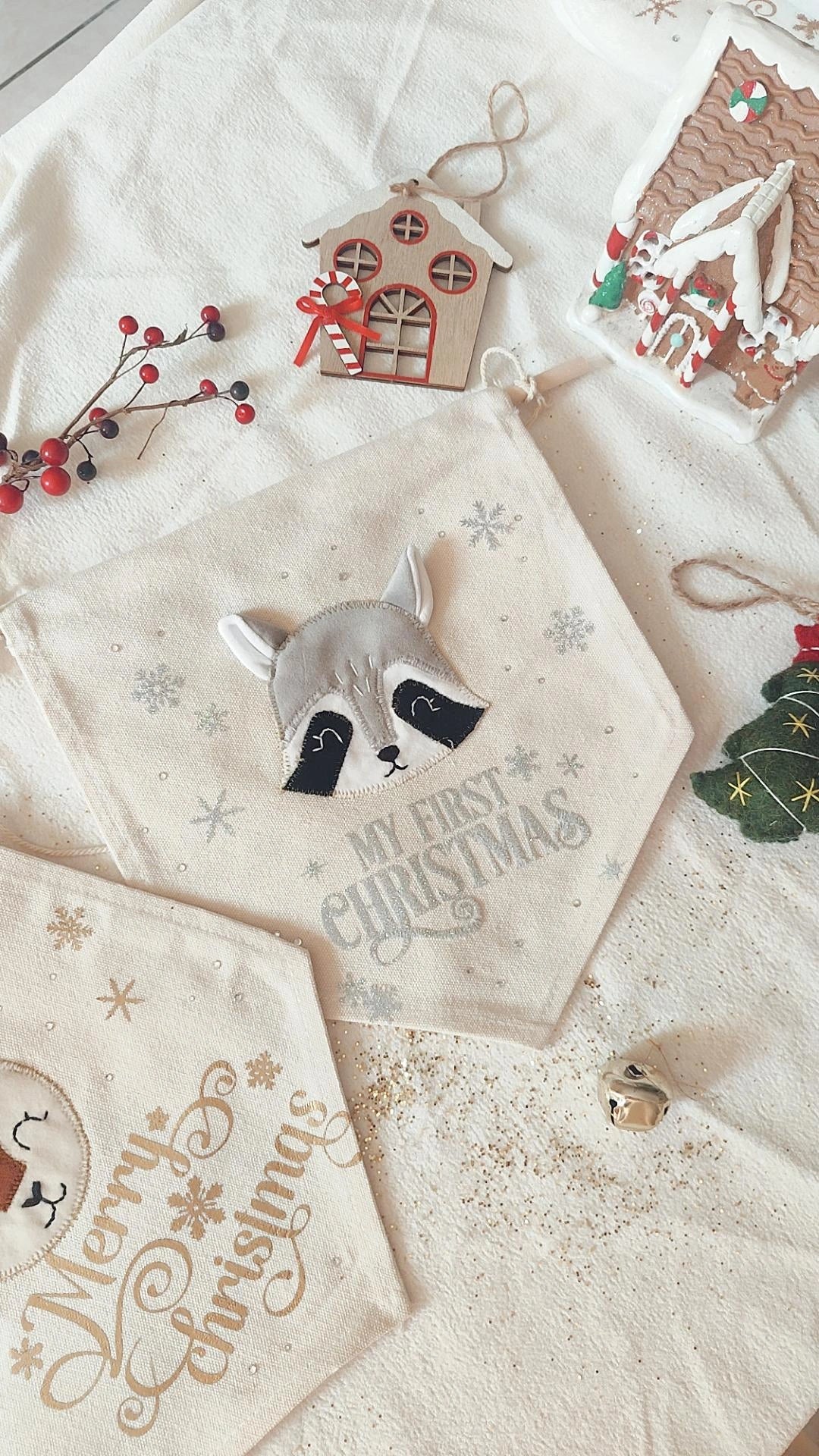 Apportez une touche de douceur et de magie à votre décoration avec ce fanion de Noël entièrement cousu à la main, à l’effigie des doudous “Aux Merveilles de Charlotte” 🧸✨Une création unique, pleine de tendresse, imaginée pour accompagner les premiers Noëls de bébé et décorer la maison avec poésie.