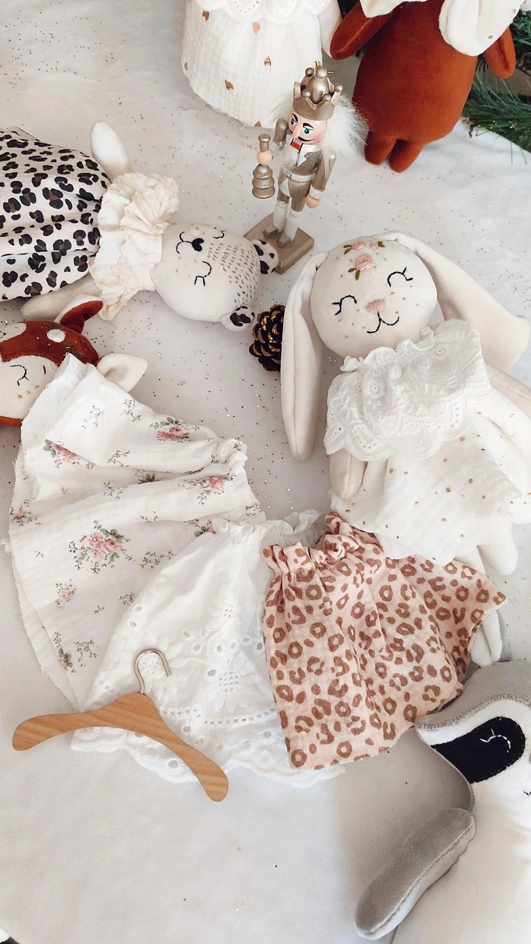 Choisissez le tissu de votre choix dans le menu déroulant pour assortir la tenue de la poupée aux couleurs du doudou ou de l’univers de votre enfant 🌸