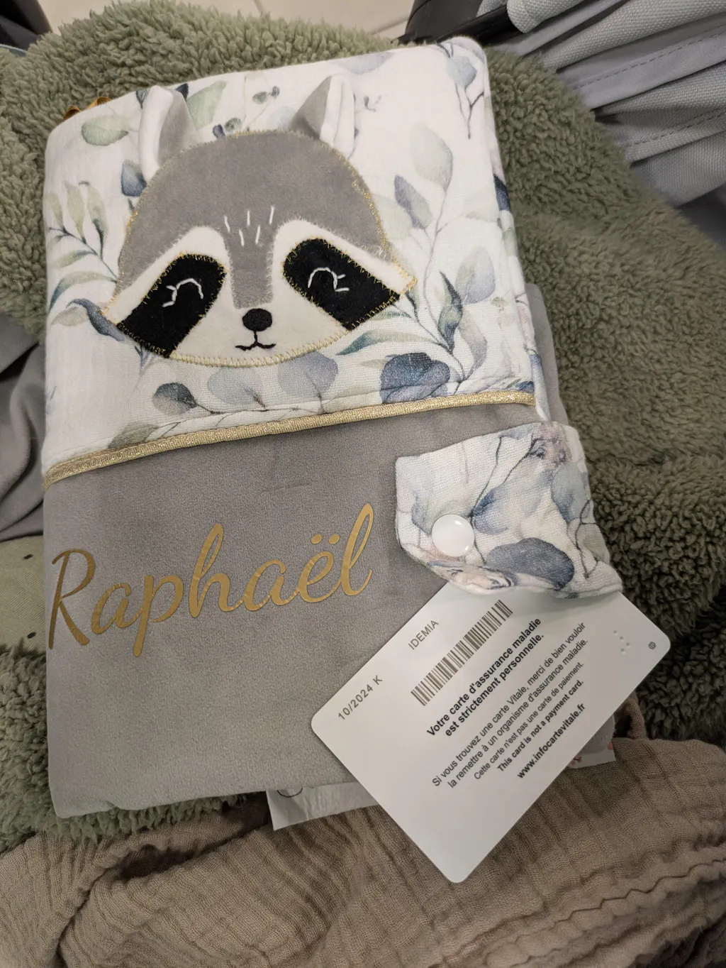 Protège carnet de santé raton laveur - modèle Personnalisable